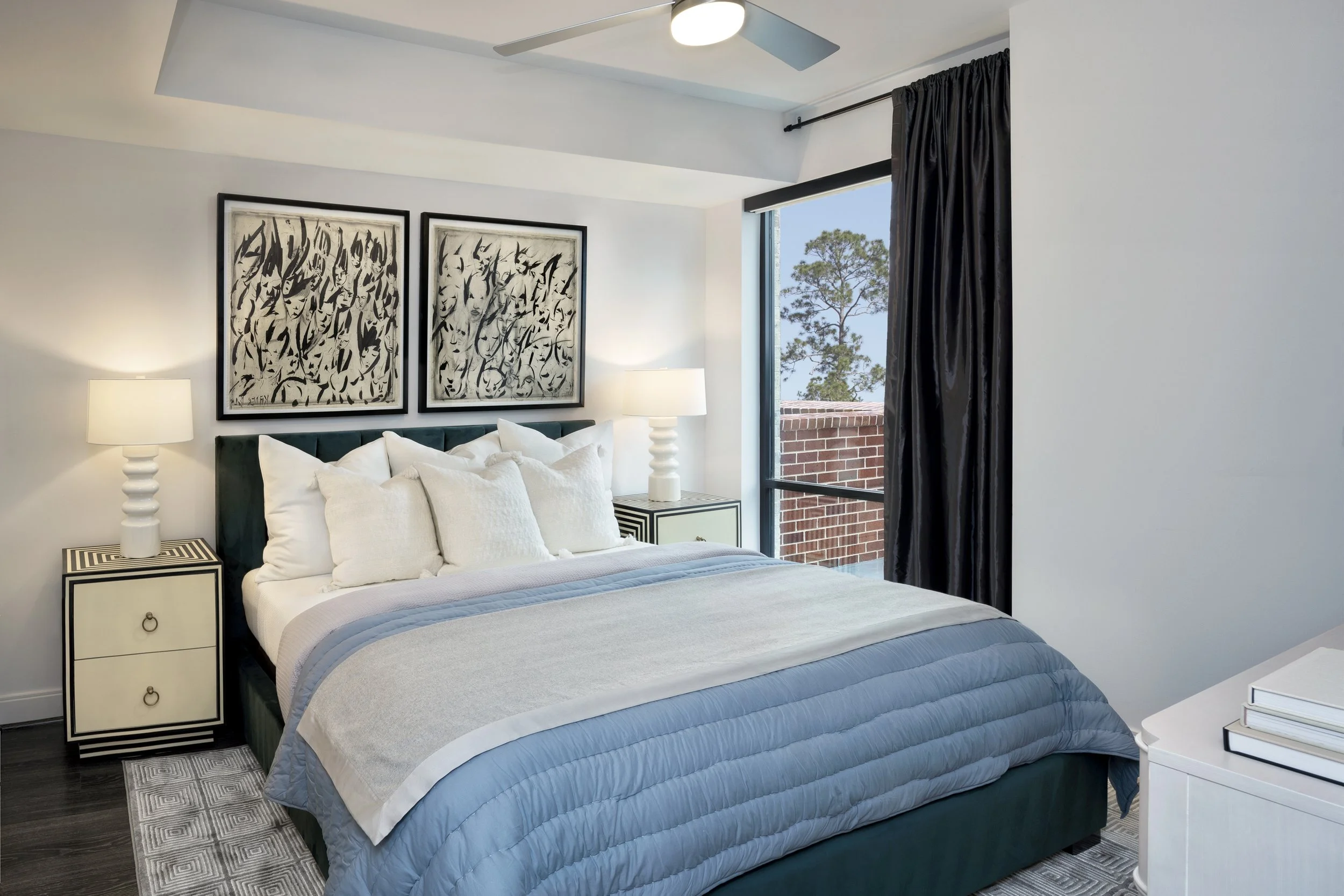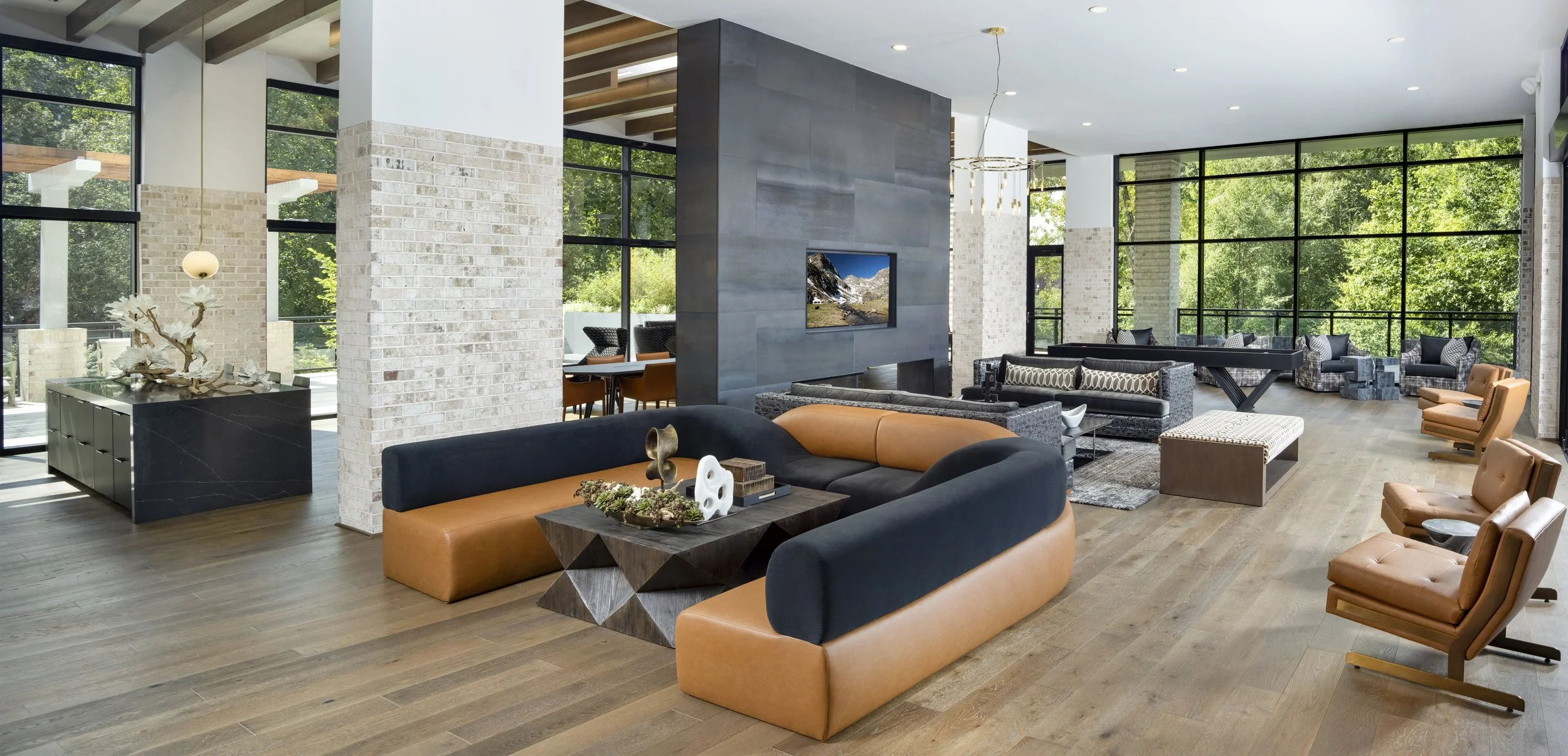 Located in Buckhead, the exclusive uptown commercial and residential neighborhood of Atlanta, Camden Buckhead provides a modern backdrop for residents looking for an urban oasis to call home. The eight and nine-story buildings feature gracious floorplans, concierge level services, wooded park views, and stunning skyline views. The interior design introduces a mid-century modern feel with sleek finishes while still hosting a warm and inviting atmosphere. The brushed gold accents in the light fixtures, furniture and accessories elevate the amenities with a glamorous touch of class.