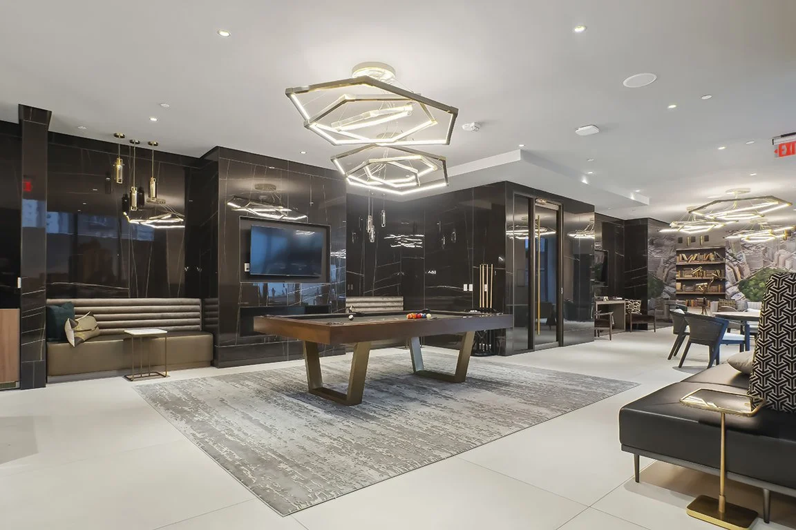 This community features rental residences in the lower floors (1909 Rittenhouse) and condominiums on the upper floors (The Laurel) with separate lobbies and entrances. The interior design of The Laurel Rittenhouse exudes luxury and sophistication. The spaces are thoughtfully curated to provide a sense of elegance and comfort. The design palette features neutral tones, complemented by rich textures and high-end finishes, creating an ambiance of understated opulence. Residents enjoy an indoor lap pool and hot tub, a five-star fitness center with a luxury locker room, steam room and sauna, yoga and Peloton room, club room and terrace overlooking Rittenhouse Square with bar and catering kitchen, conference room, and dog spa.